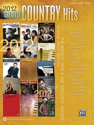 From inspirational ballads to up-tempo rockers, these are the country hits to play in 2012! This collection of more than 160 pages of sheet music captures the yearÆs most memorable songs to play and sing for a lifetime. The piano/vocal arrangements accurately reflect hit recordingsby superstars like Jason Aldean, the Band Perry, Dierks Bentley, Kenny Chesney, Vince Gill, Toby Keith, Lady Antebellum, Martina McBride, BlakeShelton, Carrie Underwood, and more! Complete lyrics and vocal melodies are included, along with basic chord fingering grids for guitarists. Ti tles: As You Turn Away (Lady Antebellum) • Banjo (Rascal Flatts) • Crazy Girl (Eli Young Band) • Dancin' Away with My Heart (LadyAntebellum) • Dirt Road Anthem (Jason Aldean) • Home (Dierks Bentley) • Honey Bee (Blake Shelton) • I Don't Want This Nightto End (Luke Bryan) • I Love You This Big (Scotty McCreery) • If I Die Young (The Band Perry) • I'm Gonna Love You Through It (M artina McBride) • Just a Kiss (Lady Antebellum) • Love Don't Run (Steve Holy) • My Heart Can't Tell You No (Sara Evans) • MyKinda Party (Jason Aldean) • Reality (Kenny Chesney) • Red So lo Cup (Toby Keith) • She Won't Be Lonely Long (Clay Walker) •Smile (Uncle Kracker) • Temporary Home (Carrie Underwood) • T hreaten Me with Heaven (Vince Gill) • Walk Me Down the Middle (The Band Perry) • We Owned the Night (Lady Antebellum) • Why Wait (Rascal Flatts) • You and Tequila (Kenny Chesney featuring Grace Potter).