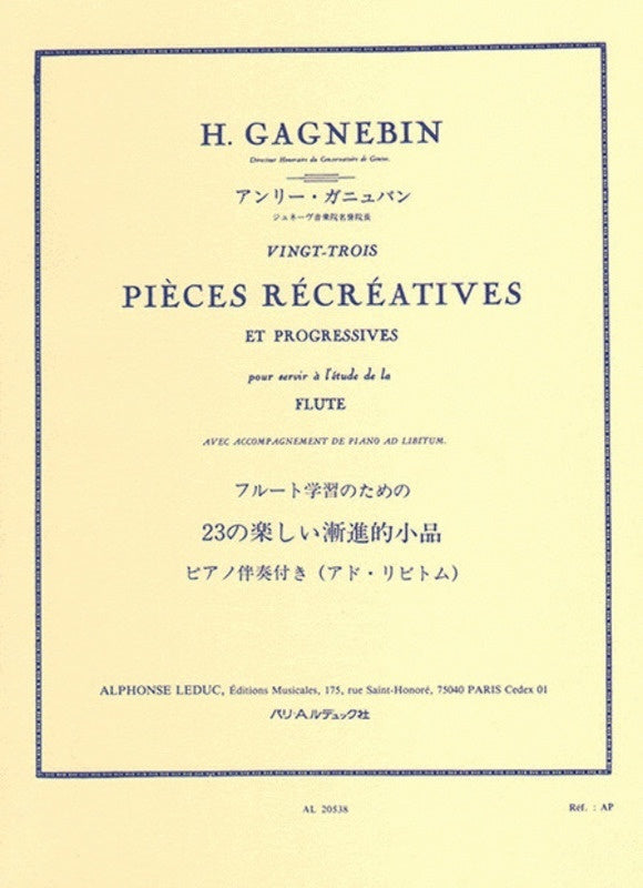 23 Pieces Recreatives Et Progressives by Henri Gagnebin. Part of the the Alphonse Leduc catalogue, this work has been produced to the highest editorial and printing standards.