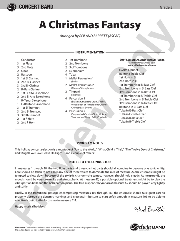 Composer: Arranger: Roland Barrett Instrumentation: Concert Band Grade: 3 Publisher: Alfred Music Series: Belwin Concert Band Format: Digital PDF