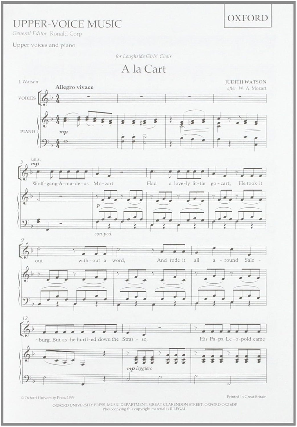 A witty and amusing encore item for 4 equal upper voices and piano, describing a little-known incident from the boyhood of Mozart. With Mozartean melodies and Alberti bass, the song includes a simple but effective four-part canon.