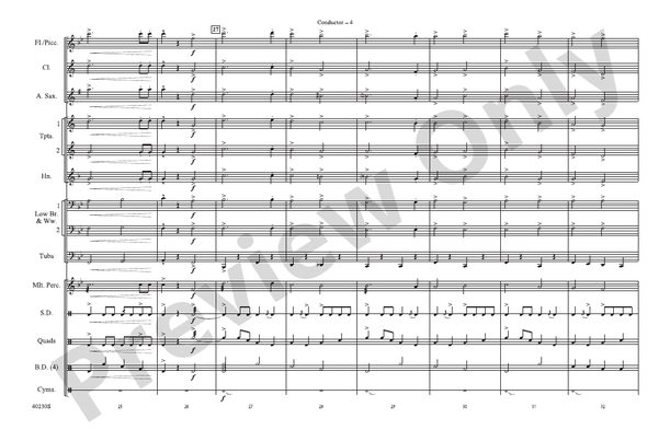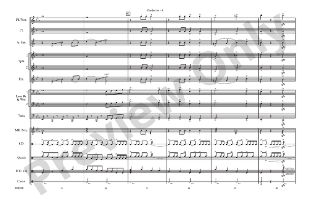 Veteran arranger Ralph Ford combines five well-known American melodies into a stirring arrangement that would be perfect for your next parade, civic or community event, or halftime show. This chart is very playable and will be ready to perform after just a few rehearsals. (1:25)