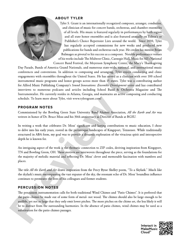 All the Earth and Air - Concert Band Conductor Score & Parts (Digital Download)