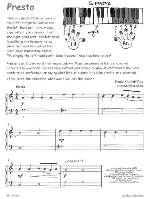 • Perfect for preparation for AMEB Preliminary Piano or Piano for Leisure
