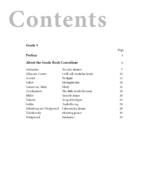 + Toccata ritmico (Alexander) + I still call Australia home (Allen arr. Coates) + Twilight (Arnold) + Midnight ride (Bober) + Misty (Garner arr. Matz) + The little would-be man (Grechaninov) + Spanish dance (Miller) + Song of twilight (Nakada) + Nashville rag (Rollin) + I dreamed a dream (Schönberg arr. Wedgwood) + Morning prayer (Tchaikovsky) + Buckaroo (Wedgwood)