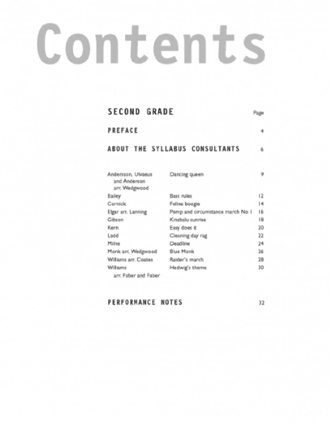 + Dancing queen (Andersson, Ulvaeus and Anderson arr. Wedgwood) + Bass rules (Bailey) + Feline boogie (Cornick) + Pomp and circumstance march No 1 (Elgar arr. Lanning) + Kinabalu sunrise (Gibson) + Easy does it (Kern) + Cleaning day rag (Ladd) + Deadline (Milne) + Blue Monk (Monk arr. Wedgwood) + Raider's march (Williams arr. Coates) + Hedwig's theme (Williams arr. Faber and Faber)