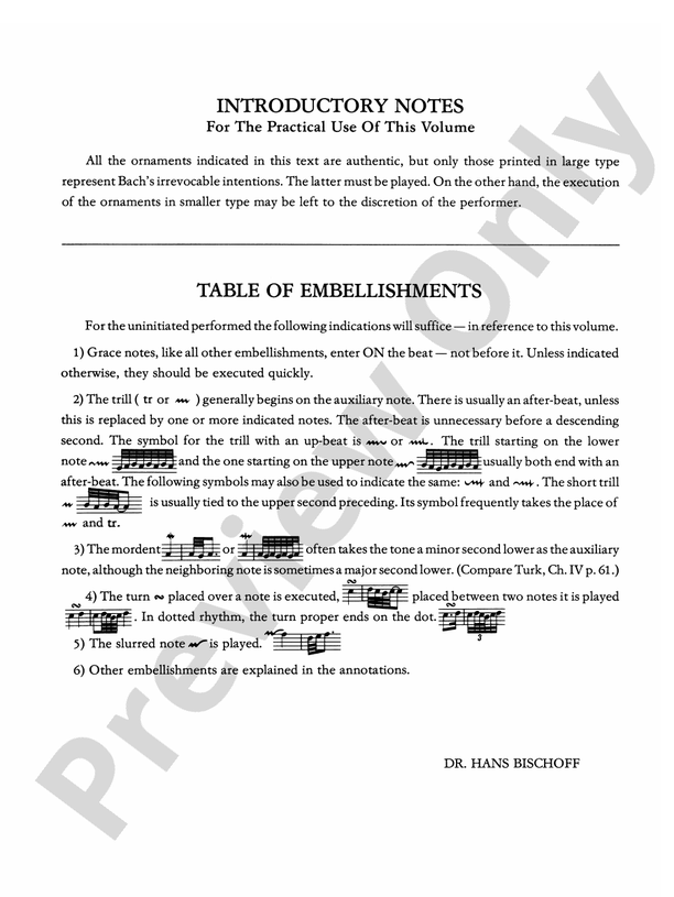 Composed in the 1720s, the *Chromatic Fantasy and Fugue* is an example of virtuosity and carefully planned harmonic structure. The Fantasy is divided into three sections: the first consisting of technically demanding toccata-like passages, a recitative requiring much emotional expressivity and the third, a combination of the two previous sections. The fugue is also divided into three sections in which the fugal theme is presented eleven times. This edition by noted Bach expert Dr. Hans Bischoff includes numerous performance notes to assist pianists in the interpretation of one of Bach's best-known works.