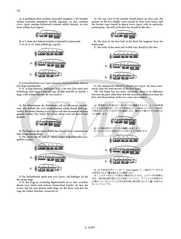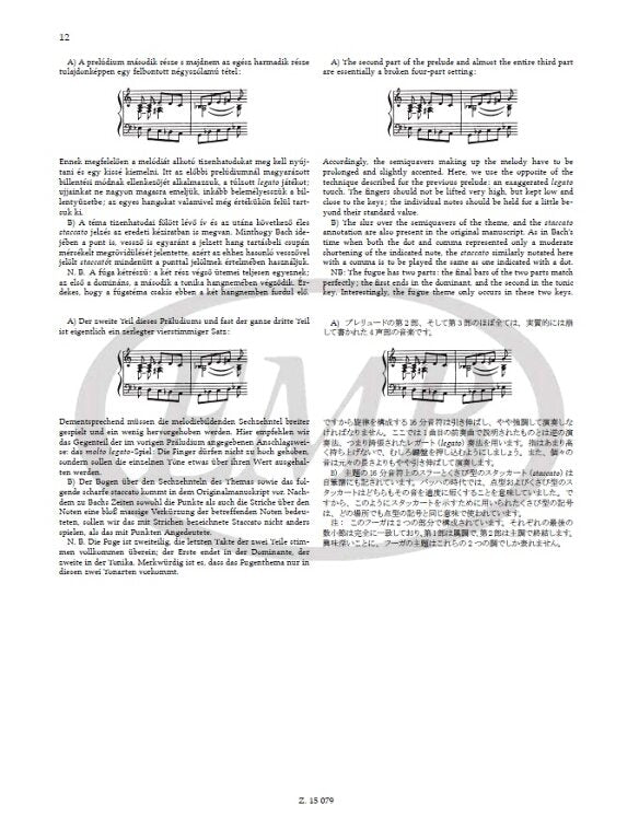 The current edition is not a reprint: errors we know of have been corrected, and the layout of the score has been re-arranged keeping in mind the need to turn pages. This edition which includes Bartók's detailed comments is complemented by facsimiles of Bach's manuscript and an afterword by László Somfai.