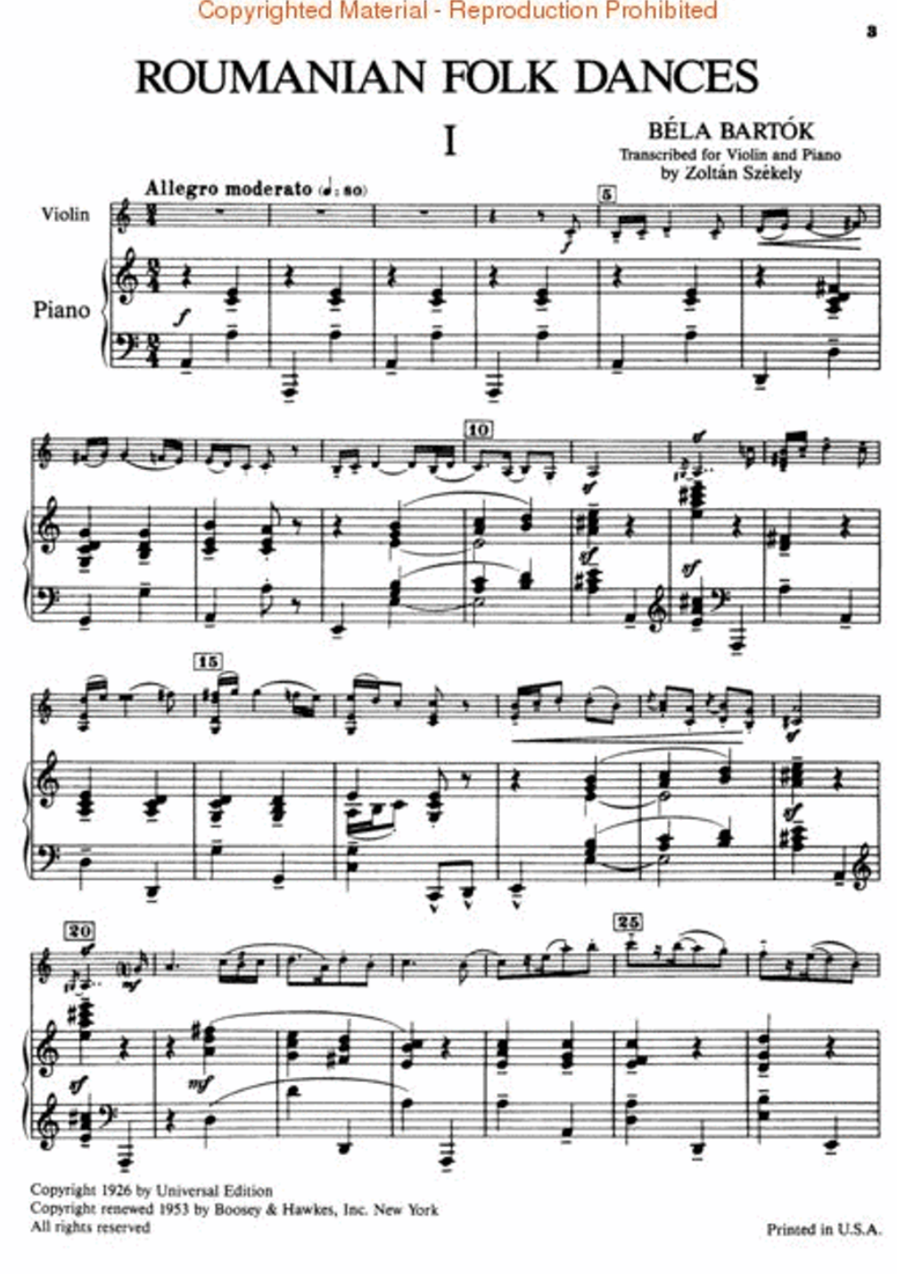 The Romanian Folk Dances, cataloged as HL 48002954 by Boosey & Hawkes, are a collection of six short piano pieces composed by Béla Bartók in 1915. Originally titled Romanian Folk Dances from Hungary, the suite was later renamed following the incorporation of Transylvania into Romania in 1920. These pieces are based on seven Romanian tunes from Transylvania, traditionally played on fiddle or shepherd's flute.