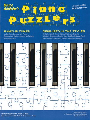 Brand-new edition of Bruce Adolphe's Piano Puzzlers as heard on American Public Media's “Performance Today.” Includes 32 tunes with songs by Gershwin, Berlin, Arlen, Porter, Rodgers, Fats Waller, Lennon & McCartney, and others disguised in the styles of Bach, Handel, Haydn, Mozart, Beethoven, Brahms, Schubert, Schumann, Chopin, Janacek, Debussy, Ravel, Rachmaninoff, Stravinsky, Prokofiev, Bartok, and Copland. Includes an introduction by Fred Child, host of “Performance Today” as well as background info by Bruce Adolphe. “Bruce Adolphe has taken a common musician's party game and elevated it to high art and truly funny musical slapsticks. The Piano Puzzlers are a unique combination of extraordinary insight into the styles of many composers – subtle, expert workmanship and great, great fun!” – JosephKalichstein