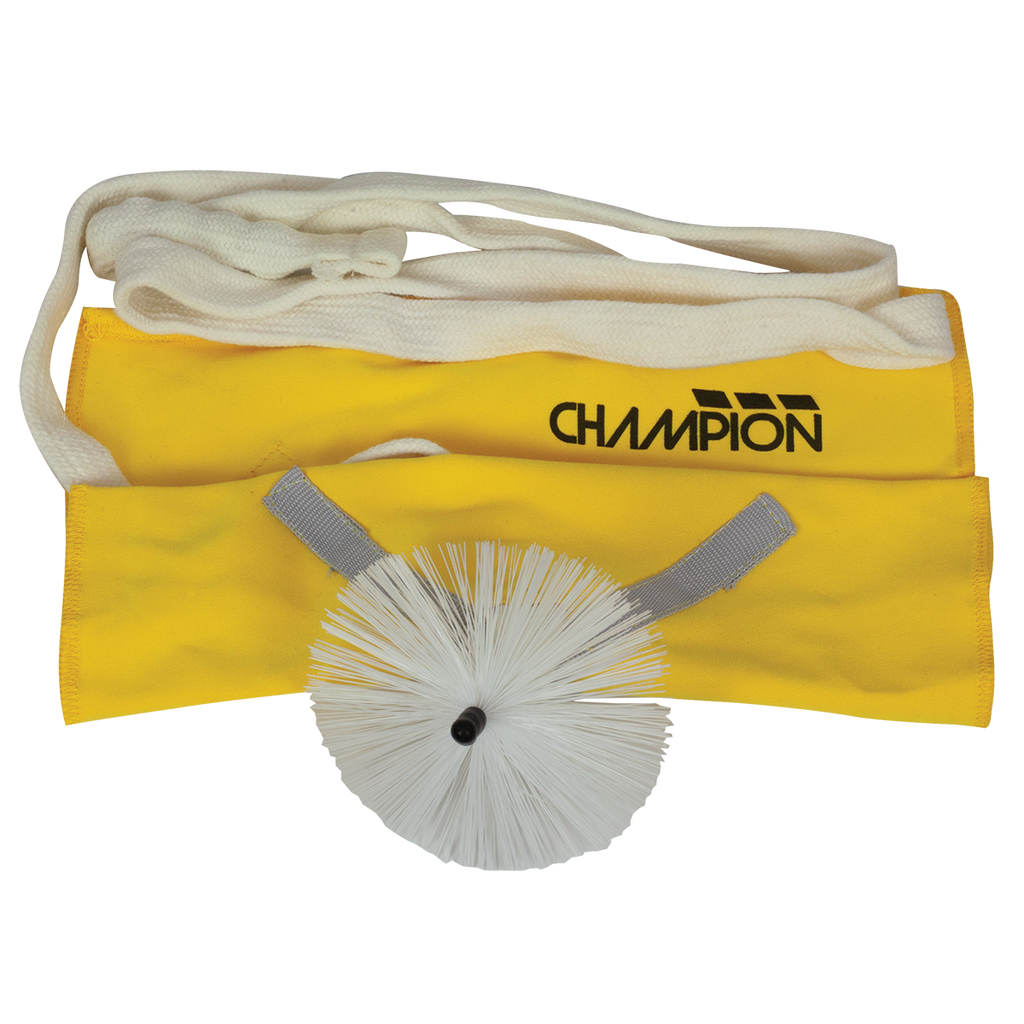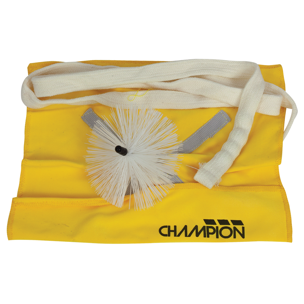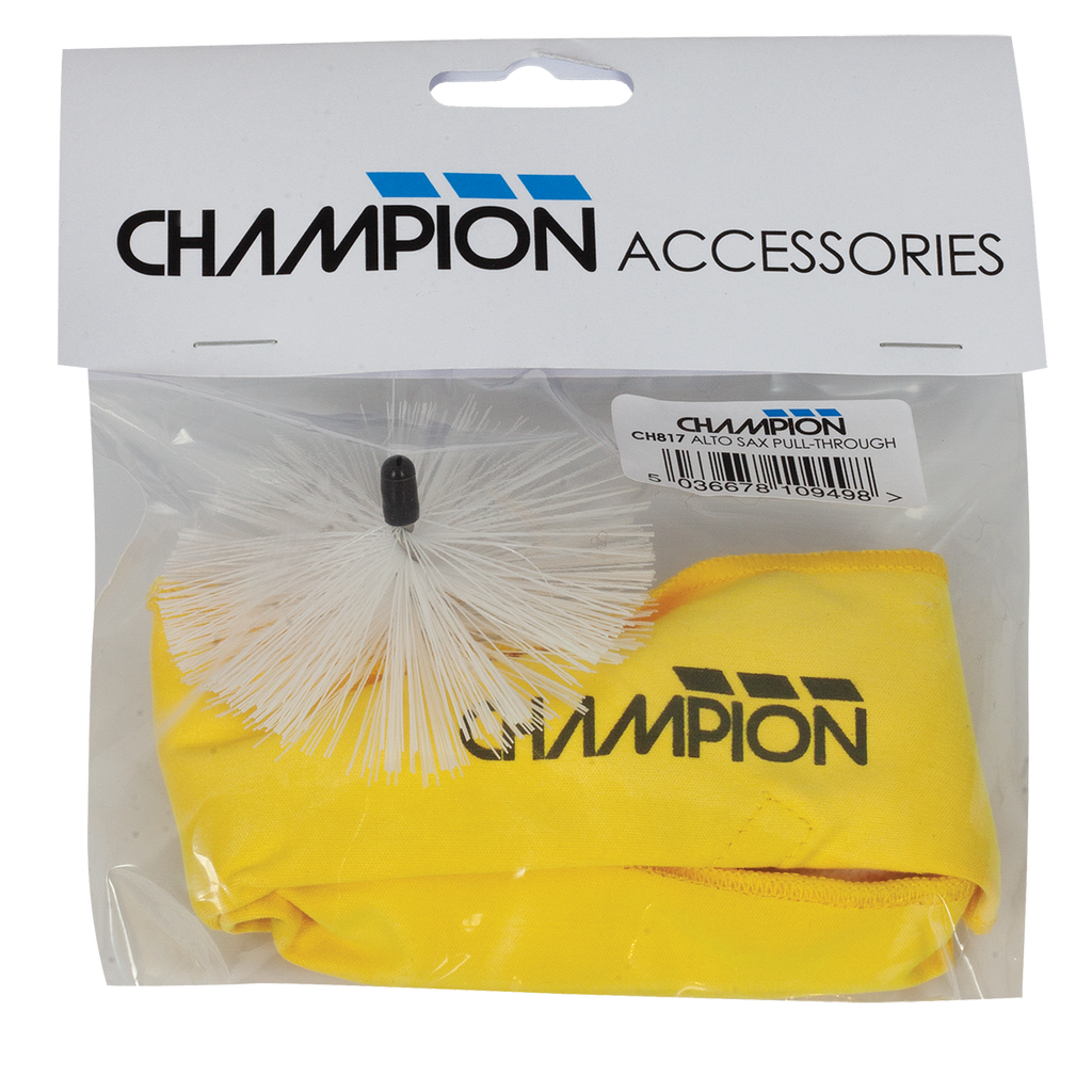 Yellow microfibre cloth 195 x 205mm, pull-through string with weighted end 1070mm length, white synthetic brush, diameter 70mm