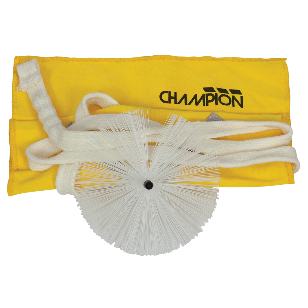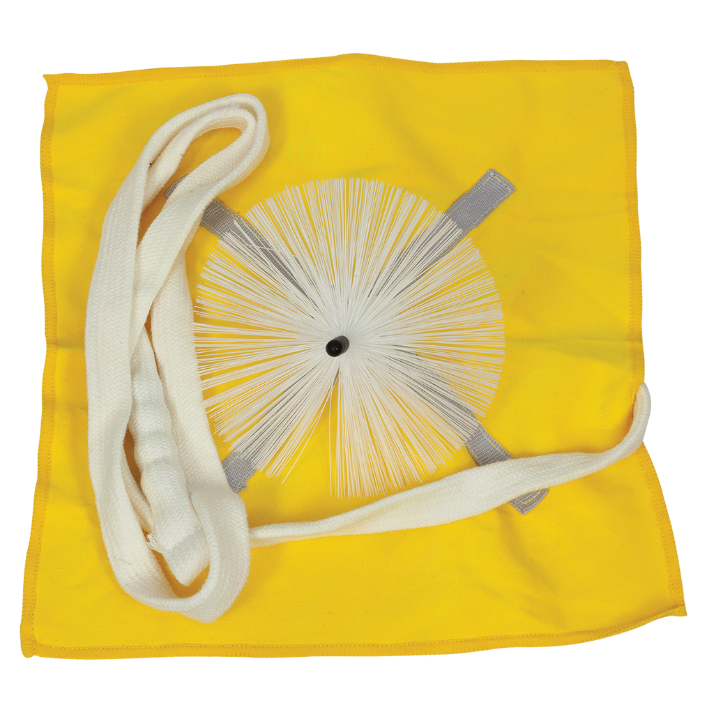 Yellow microfibre cloth 195 x 205mm, pull-through string with weighted end 1040mm length, white synthetic brush, diameter 95mm