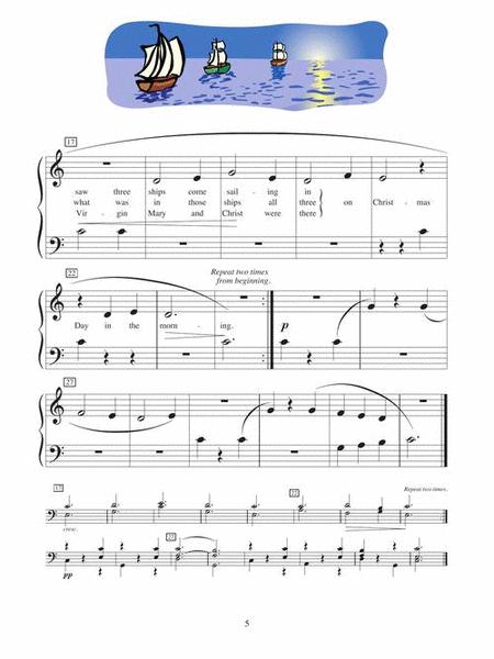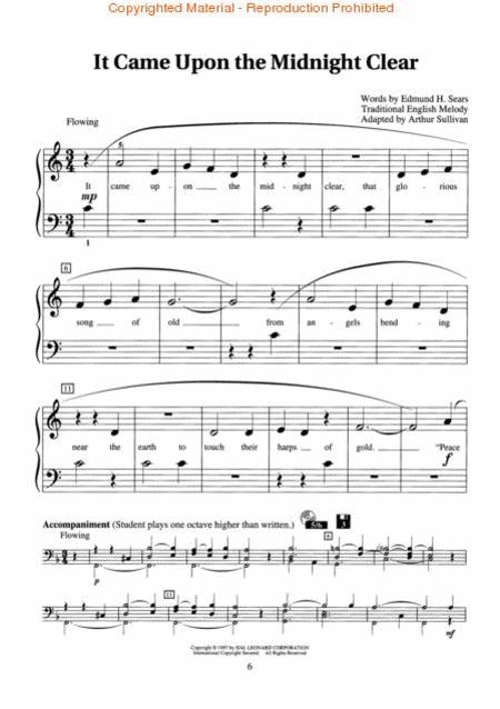 This great collection of favorite Christmas songs correlates with Hal Leonard Student Piano Library Piano Lessons Book 2, and is a perfect supplementary book for all methods. Large-staff notation is easy to read. Each student solo also has a teacher accompaniment. 11 songs: God Rest Ye Merry, Gentlemen * I Saw Three Ships * It Came upon the Midnight Clear * Joseph Dearest, Joseph Mine * O Come, All Ye Faithful (Adeste Fideles) * O Come, Little Children * O Little Town of Bethlehem * Silent Night * Sing We Now of Christmas * Up on the Housetop * What Child Is This? Level: Elementary. Basic note values and rests, including beamed eighths; 3/4, 4/4 meter; intervals through a 5th; limited use of hands-together passages. Reading range: Bass Clef E below Middle C - Treble Clef D one octave above Middle C.