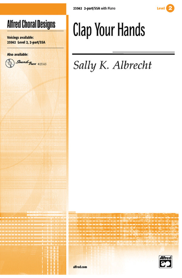 Here's a captivating choral work written especially for 2-part and developing SSA choirs. Energetic vocal lines are punctuated by rhythmic handclaps and added layer upon layer to create a festive contemporary piece appropriate year round. Changing meters add excitement and contrasting dynamics enhance the energized character. A wonderful opener or closer for concert and festival use. Majestic SoundTrax CD.