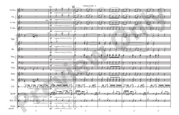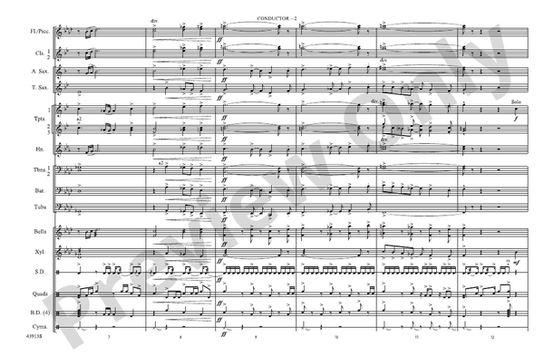 Here is a sizzling Latin-jazz original from writer Earl Fox. "Con Slancio," which means "with enthusiasm," starts out big and bold and just keeps on coming! Featuring solid scoring, commanding harmonies, and a tasty trumpet solo, this is marching band at its best! (2:10)