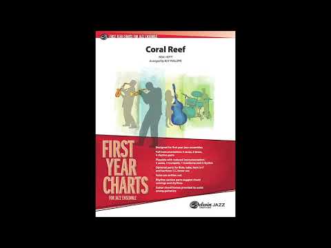Coral Reef is a level 1 piece from the First Year Charts for Jazz Ensemble series designed for first year jazz ensembles. Full instrumentation includes 5 saxophones, 6 brass and 4 rhythm parts. The piece is playable with reduced instrumentation. These parts include 3 saxophones, 2 trumpets, 1 trombone and 3 rhythm. Optional parts include flute, tuba, horn in F and baritone T.C./tenor sax. All solos are written out, the rhythm section parts suggest chord voicings and rhythms and guitar chord frames are provided to assist young guitarists.
