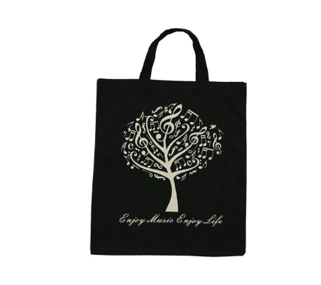 Cotton And Linen Music or Shopping Bag Black with White Notes and Clefs
