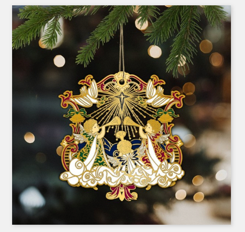 These stunning & creative three-dimensional, diorama style Christmas ornaments, are made in solid brass, etched, cut and decorated with remarkable detail, using a rich colour palette of deep burgundy, sapphire blue & emerald green. Each element is thoughtfully designed and skilfully put together by hand to bring a Christmas scene to life, in 3D. Finished in 18K gold plating, these Christmas ornaments are differentiated and make heirloom quality collectable keepsakes, or gifts for generations to enjoy.