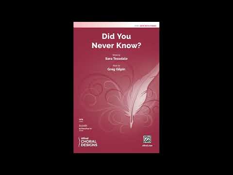 Sara Teasdale's wistful words speak beautifully in this lush musical setting by Greg Gilpin. To fully reflect the deep emotions of this poignant piece, pay careful attention to dynamic contrast and the nuance of tempo. "Did you never know, long ago, how much you loved me?"