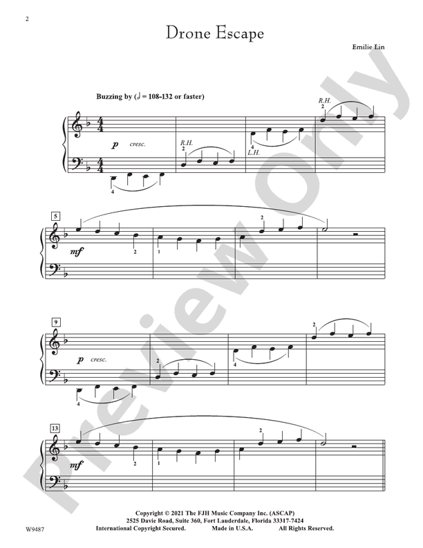 If you have students who like to play fast, this is a good choice for them. In the key of D minor with expressive dynamics throughout, the continual crossed hands echo and teach players how to move around the keyboard quickly. No eighth notes used. Easy to learn and memorize-the audience will really hear the drone activity in this flashy recital piece.