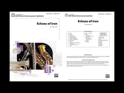 Echoes of Iron, by Jordan Sterk, utilizes the first six notes of the B-flat concert scale for all instruments, plus a seventh note for the saxophones and French horn. Students will love the bold and powerful nature as well as the industrial sounds of the piece. Echoes of Iron is an excellent vehicle to teach and reinforce eighth-note rhythms, dynamics, and articulation. There are plentiful opportunities to create dynamic contrast, and each section of the band gets a chance to shine through with melody, including the percussion section with a brief soli. Perfect for one of your students' first concerts! (1:20)