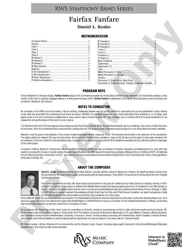 Start your concert with a bold statement of musical energy. Shimmering woodwinds introduce a brilliant brass statement that both performer and listener will find inspiring. Every section will be actively engaged in the music making from the opening measure to the final powerful brass chord.