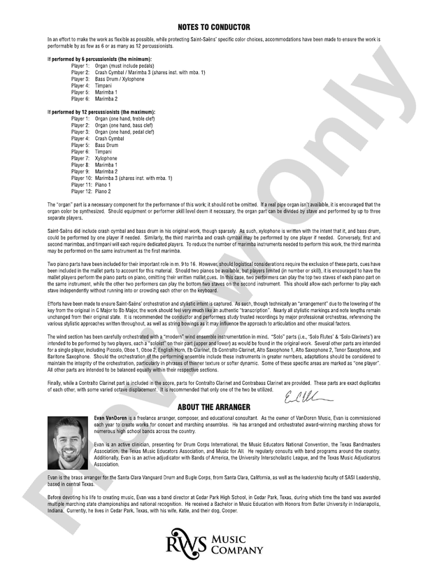The "Finale" to Saint-Saëns' 3rd Symphony ("with Organ") is a shimmering, sparkling explosion of color that stands out among the classical repertoire as one of its most exciting endings! Evan VanDoren has masterfully captured Saint-Saëns' unique compositional color and style, adjusting the key for maximum playability, while staying true to the original work!