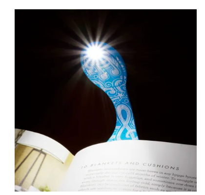 This lightweight bookmark is also a light. Perfect for reading in bed. Dimensions:14cm x 3cm in size, 8 lumens of powerful led light. 2 high quality cr2016 batteries included,