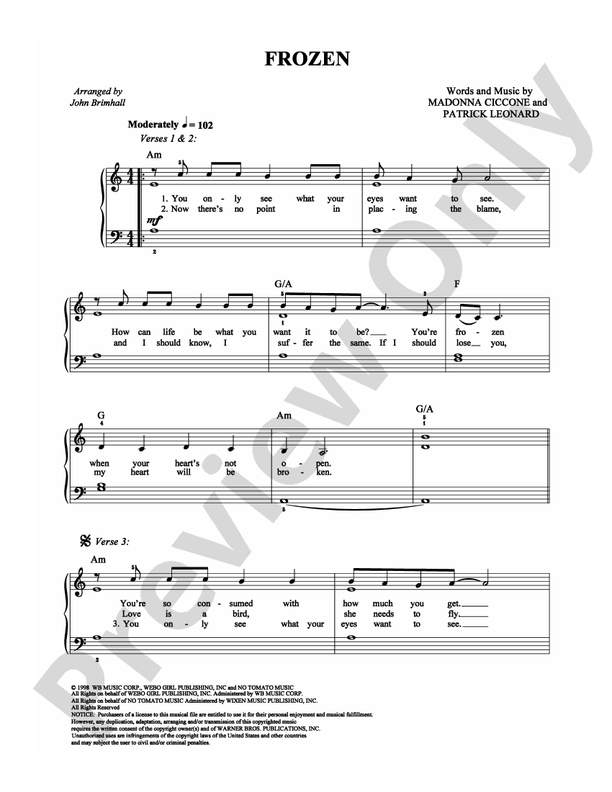 Composer: MadonnaArranger: John BrimhallInstrumentation: PianoGrade: Easy PianoPublisher: Alfred MusicSeries: Format: Digital PDF