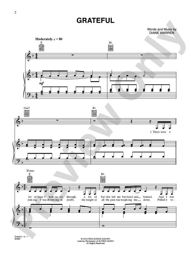Composer: Diane Warren Arranger: Instrumentation: Grade: Publisher: Alfred Music Page Count: 5 Format: Digital PDF