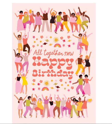 Greeting Card a Group of Party People Dancing All Together Now Happy Birthday