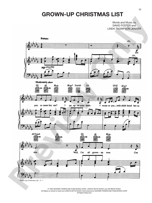 Composer: David Foster,Linda Thompson JennerArranger: Instrumentation: PVGGrade: Publisher: Alfred MusicPage Count: 5Format: Digital PDF