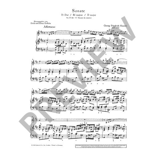 Handel - Sonata in DMaj #13 (15 Sonate da Camera) - Violin/Piano Accompaniment edited by Doflein Schott ED09187