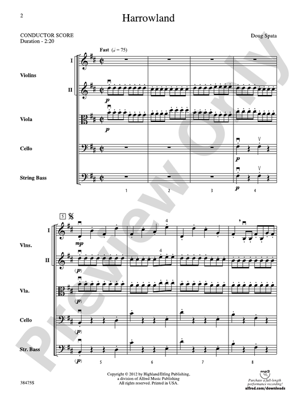 Sweeping dynamic changes, dark melodies that flow between the sections, and driving ostinatos add to the shadowy allure of the dramatic journey of Harrowland. Teachers will appreciate the technical workout provided for students with string crossings and repeat markings throughout. Add suspense and excitement to any concert program!