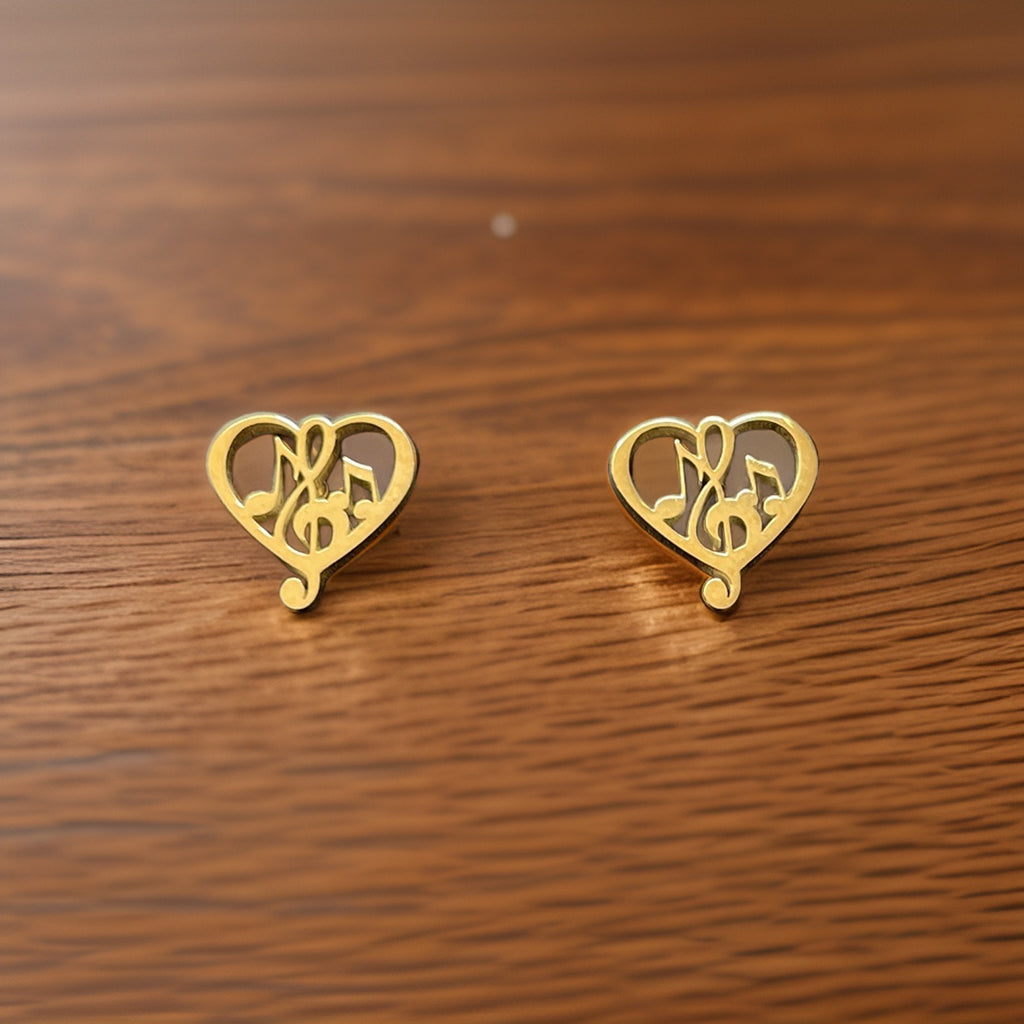 Heart Shaped Treble Clef and Notes Stud Earrings Gold