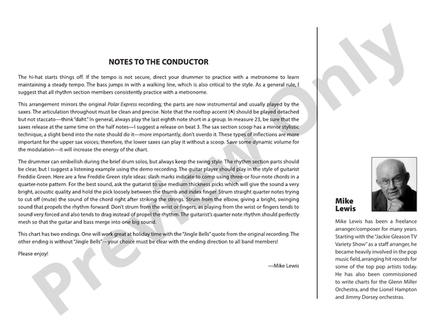 From the movie The Polar Express, "Hot Chocolate" is hot stuff. Based on the original recording, this one has been adapted for the young player by arranger Mike Lewis. No solos, modest ranges and a driving bass line make it move along. Mike offers two endings to make this chart effective all year round: one with the hip "Jingle Bells" quote and one without. This is a fun swinger loaded with energy. Check it out! (2:30)