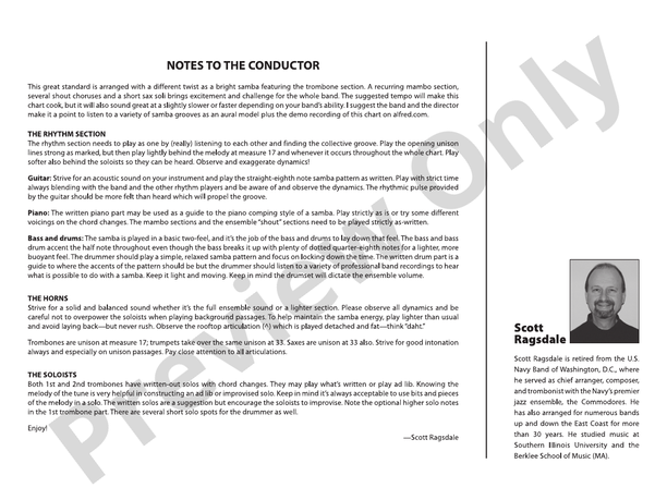 This superb chart has as a trombone section feature with a samba groove. There is solo space with written-out solos for trombones 1 and 2, excellent and accessible trombone solis, and lead trumpet range to written A above the staff. Give the 'bones some of the spotlight!