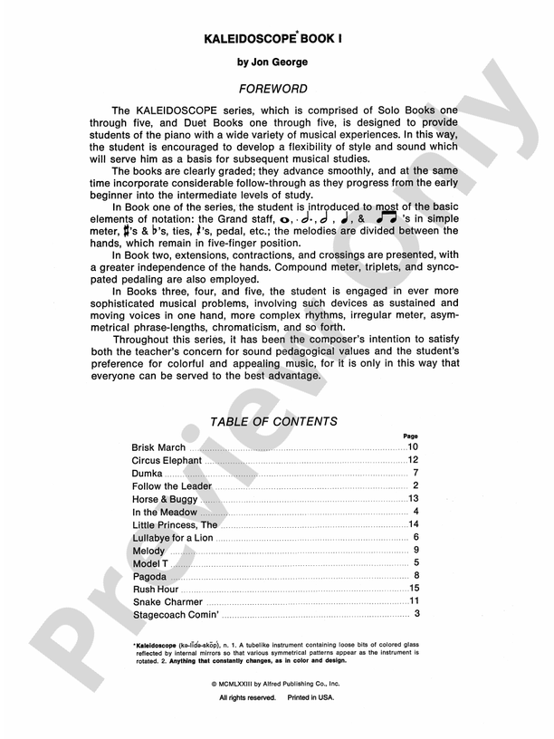 Kaleidoscope Solos, Book 1 - Piano (Digital Download)