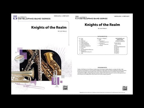 Knights of the Realm, by Scott Watson, harkens back to the days of castles, dragons, courage, and valor, when protectors of the kingdom in suits of armor embarked on noble quests. The music's captivating melody and strong rhythms pay homage to these knights of old, whose heroic deeds have been immortalized in legend. Written carefully to the abilities of beginning band students, Knights of the Realm transports musicians and audience to an enchanted time of medieval lore when bravery and chivalry reigned supreme! (1:50)