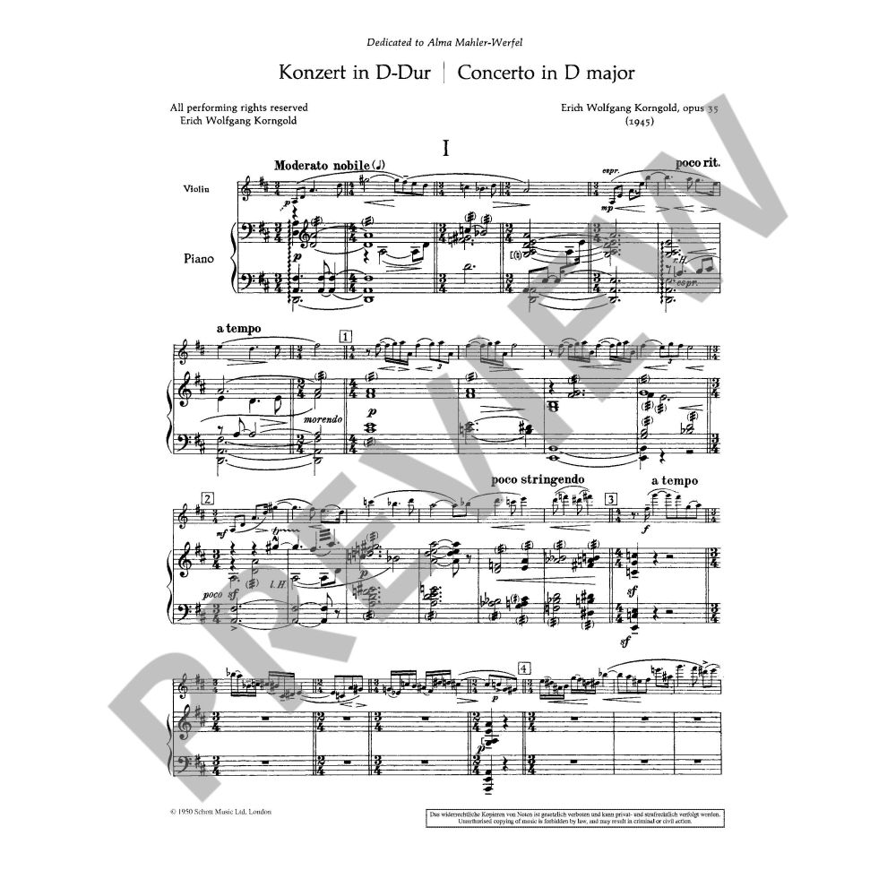 Korngold's Violin Concerto Op. 35 is among the five violin concertos most frequently played in music history. There is hardly a violin virtuoso, hardly an outstanding conductor who does not have this work in his or her repertoire. From January 2019 onwards, the printed edition of the piano reduction contains two solo parts: the original part and a solo part with fingerings and bowings by Florin Iliescu.