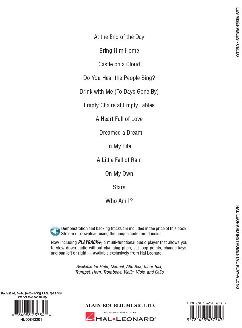 Solo arrangements of 13 songs from the beloved Boublil and Schönberg musical, including: Bring Him Home • Castle on a Cloud • Do You Hear the People Sing? • I Dreamed a Dream • In My Life • On My Own • Stars • and more. Book includes access to online audio recordings of excellent backing tracks for play-along fun.