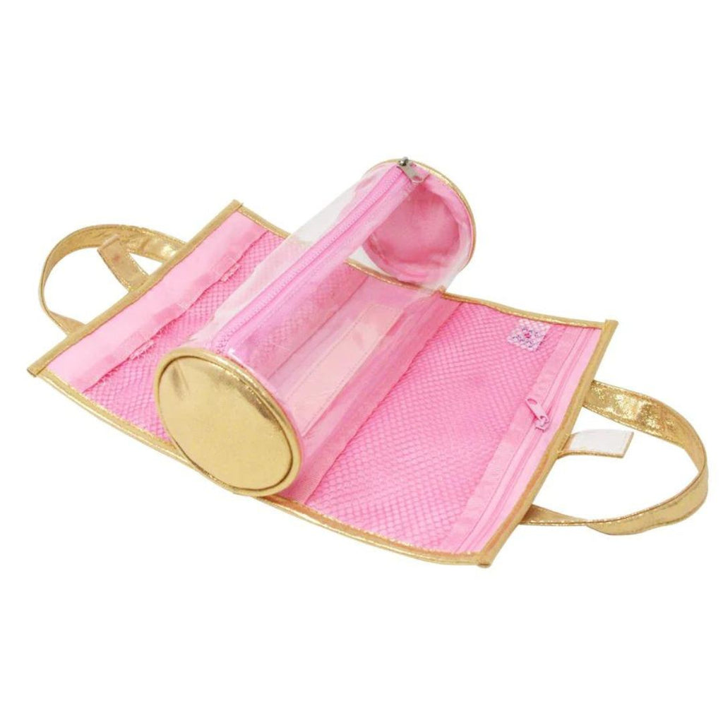 Let's Dance Handbag is a basic for dance-loving girls. The iconic shape is the perfect size for carrying her basic items such as her purse, lipgloss and other little knick-knacks. The all-over iridescent fabric is accented with embroidered sequins and finished with metallic gold trims and carry handles.