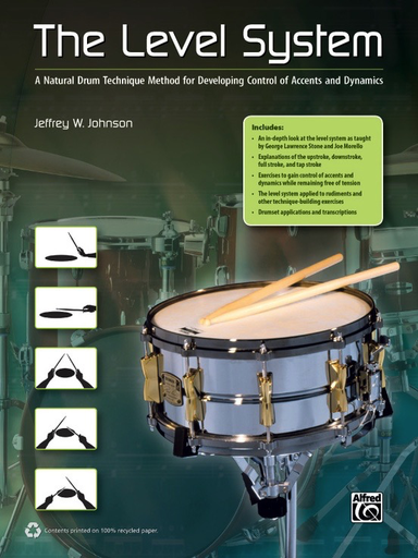 This book is an overview of the level system as taught by George Lawrence Stone and Joe Morello. Use of this method will allow the performer to transition instantly between accented and unaccented notes. The level system is unlike most other methods of drumming because the hands always prepare for the upcoming note one stroke in advance by utilizing full strokes, downstrokes, upstrokes, and taps. This allows the drummer to perform within an extreme dynamic range while remaining free of tension. The Level System will prove to be a valuable aid to the drummer who has experience on the instrument but wishes to further develop a natural technique. It can also be an important tool for the beginning student first learning the techniques and rudiments of drumming. Drumset players will benefit from both the hand exercises and the drumset exercises in the last chapters.