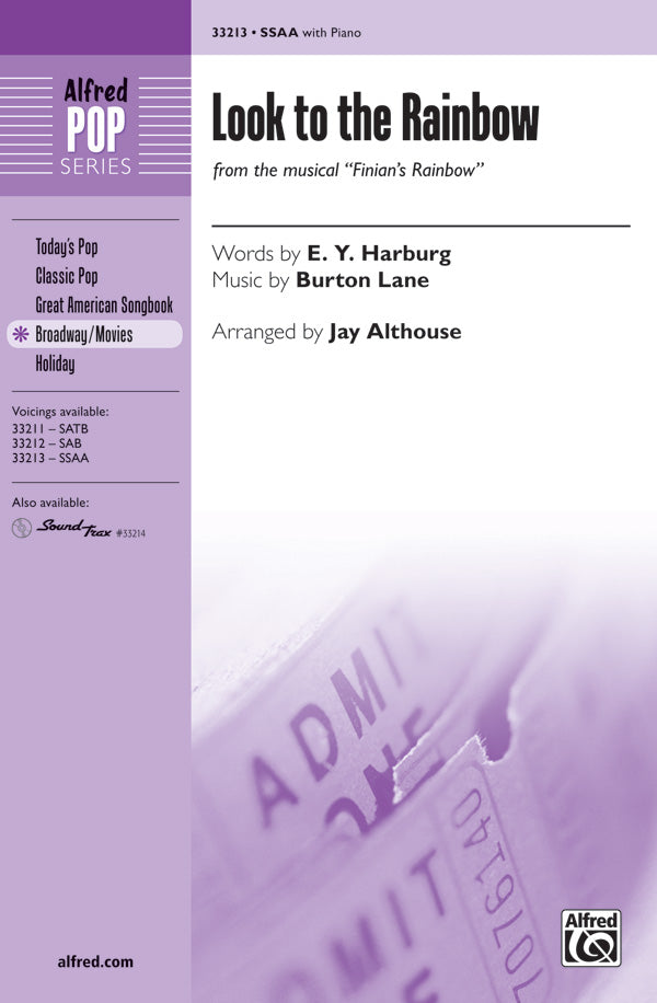 The joyous revival of Finian's Rainbow in Broadway's 2009 season is reason enough to select this inspired and uplifting setting of the beloved song "Look to the Rainbow." Charming, with just a bit of Irish lilt.