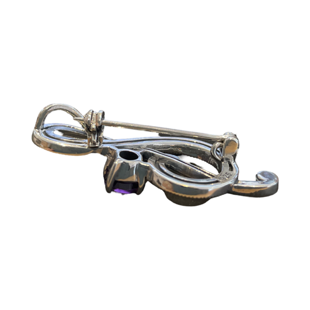 Marcasite Treble Clef Pin/Brooch with a Garnet Stone
