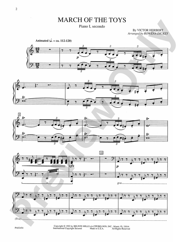 Here's a sure winner for teachers, students and piano ensemble teams. Victor Herbert's famous March of the Toys has been arranged at the upper intermediate level. The long time favorite melody sparkles in this arrangement, supported by the steady march rhythm depicting the toy soldiers. Audiences will love it! A Federation Festivals 2024-2028 selection.