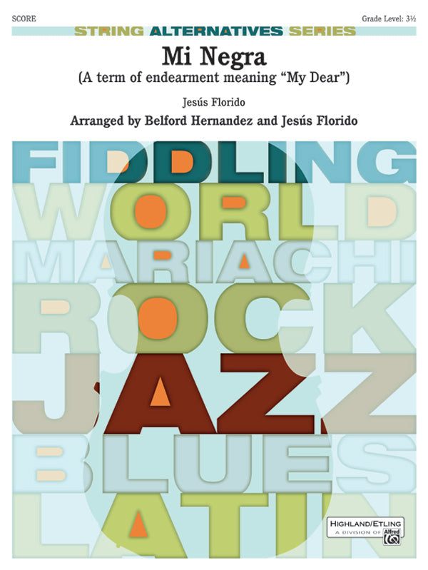 Mi Negra, a term of endearment meaning 'my dear.' is a song for a girl who is a great dancer, so put on your dancing shoes and a big smile because this is a fun tune for all. Violinist, composer and educator Jes˙s Florido has been working for years to bring Latin music to string players. Derived from the rich tradition of string playing in Latin America "Mi Negra" is a dance groove tune based on the traditions of Florido's homeland of Venezuela. He has taken on the task of writing these traditions down since they are mostly aural. This original tune was written for his students so that they could learn some Latin fiddle tunes, but also as a tune that professionals can enjoy playing.