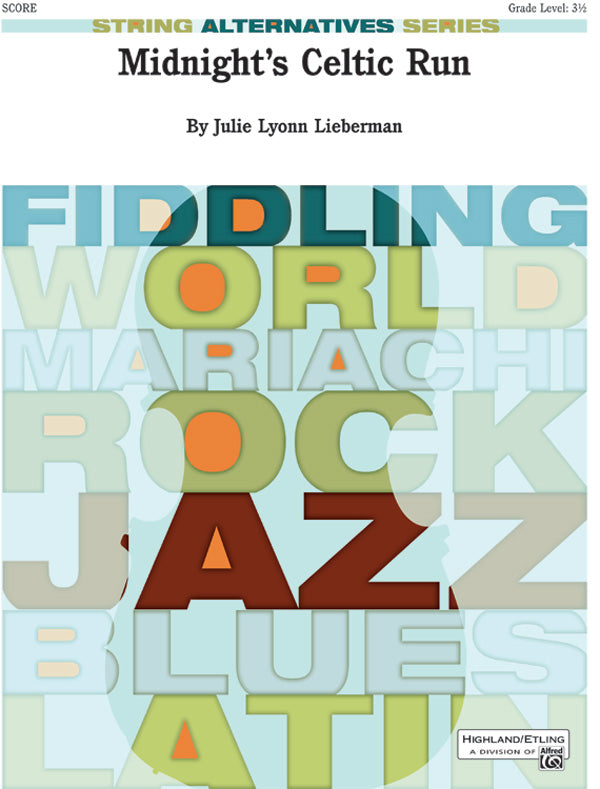 Tested at a number of state MEA and ASTA conferences, this piece has created a pre-publication buzz for its unforgettable melody, sprightly feel, and marvelous interplay between the parts. "Midnight's Celtic Run" includes a composed accompaniment for soloing, with sample solos written out for violin, viola, cello and bass. Julie Lyonn Lieberman has created another winner with this original composition in 4/4 yet 12/8 feel, built on the D mixolydian scale (D, E, F-sharp, G, A, B, C, D), and written in the Celtic style! Optional: first violin part includes segments in first position or third.