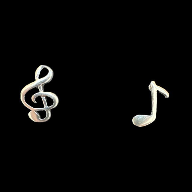 Music Stud Earrings Treble Clef and Quaver Note Sterling Silver