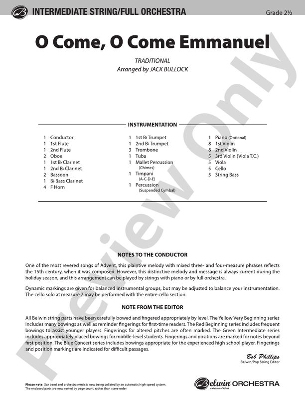 One of the most revered songs of Advent, this plaintive melody with mixed three- and four-measure phrases reflects the 15th century, when it was composed. However, this distinctive melody and message is always current during the holiday season and this arrangement can be played by strings with piano or by full orchestra. Rejoice!