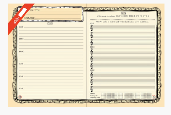 Peter Pauper Press Song Writers Journal Notebook Red with Guitar and Banjo on Cover